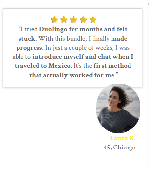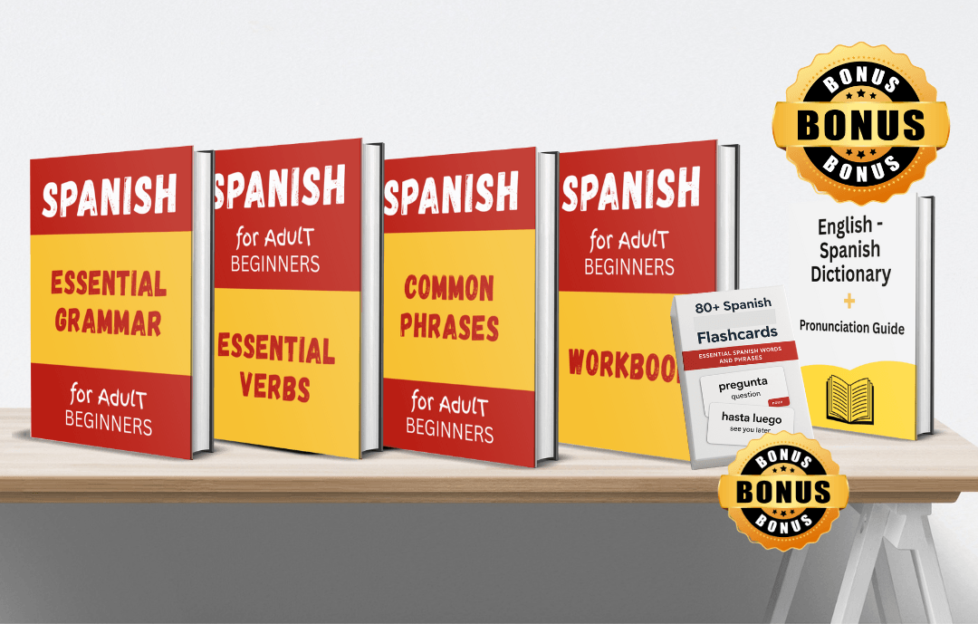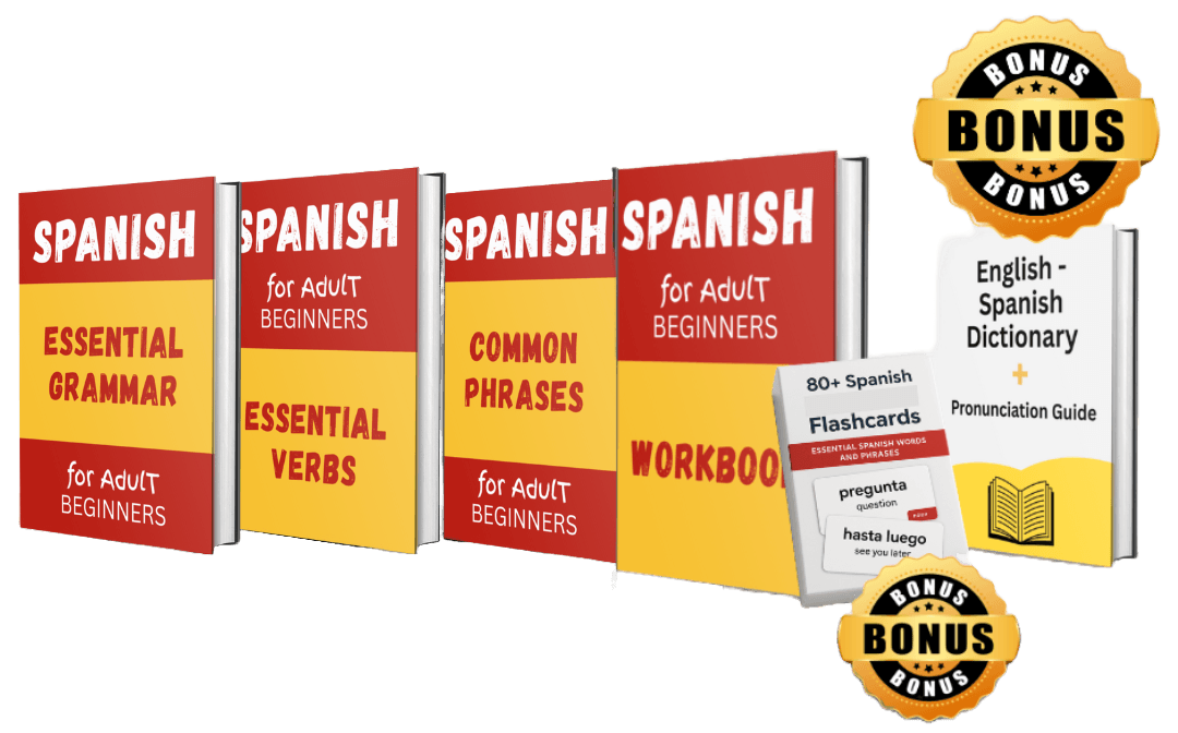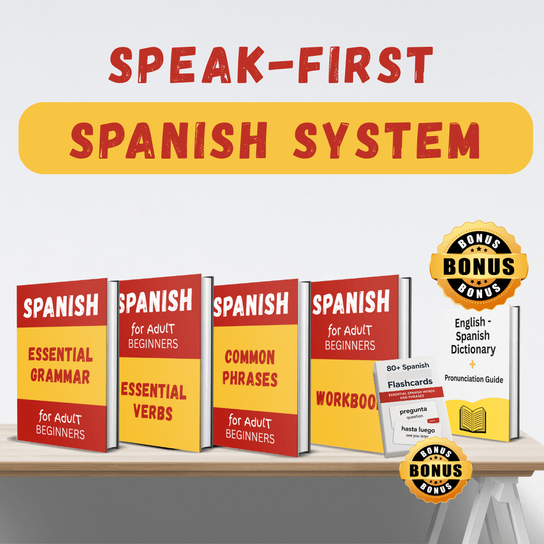 We present to you the 4-in-1 Spanish Digital Bundle, a unique and proven system that solves the #1 problem adult learners face: studying without ever speaking.